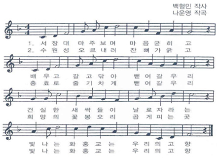 교화로서 개나리는 겨울의 매서움을 이겨내고 피어나는 개나리처럼 튼튼하고 씩씩하게 잘 자라라는 의미입니다.